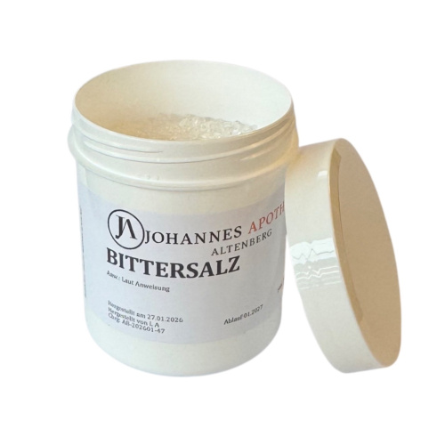 Bittersalz, chemisch Magnesium Sulfat, ist ein klassisches Abführmittel und wird für Sie frisch abgefüllt.