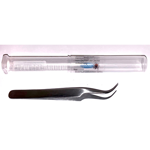 Tipp: Pinzette im Kühlfach lagern. Durch den Kälteschock läßt sich die Zecke leichter entfernen.