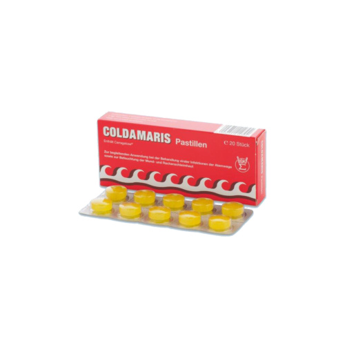 Coldamaris Pastillen enthalten den aus Rotalgen gewonnenen Wirkstoff iota-Carrageen (Carragelose®). Carragelose® bildet einen feuchtigkeitsspendenden Schutzfilm auf der Rachenschleimhaut. Auch der natürliche Feuchtigkeitsfilm, der sich beim Lutschen der Pastille bildet, wird durch die viskositätserhöhenden Eigenschaften der Carragelose® stabilisiert und verbleibt länger auf der Schleimhaut.