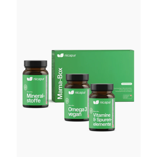 Für einen starken Start ins neue Leben! Die NICApur® Mama-Box stellt sicher, dass Mama und Baby ideal mit Vitaminen, Spurenelementen und der Omega-3-Fettsäure DHA versorgt sind. Denn Schwangerschaft und Stillzeit sind ganz besondere Phasen einer Frau, die auch einen besonderen Nährstoffbedarf erfordern. Auch bereits vor der Schwangerschaft - wenn der Wunsch nach der eigenen kleinen Familie erstmals in den Fokus rückt - können die richtigen Nährstoffe unterstützen. Durch den nahezu neutralen Geschmack sind die Präparate besonders für geruchs- und geschmackssensible Schwangere geeignet.