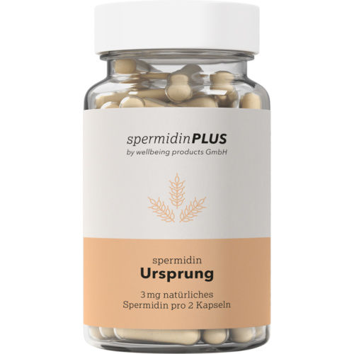 Eine Kapsel unseres Spermidin Ursprung enthält 1,5 mg Spermidin. Der natürliche Spermidingehalt in den Körperzellen nimmt mit fortschreitendem Lebensalter ab. Eine optimale Quelle für Spermidin sind Weizenkeime, welche bereits von Natur aus einen sehr hohen Spermidingehalt aufweisen. Ein spezielles Verfahren sorgt für einen potenzierten, äußerst hohen Spermidingehalt in unseren spermidinPLUS Produkten. Dieser kann über die herkömmlichen Lebensmittel (Nüsse, Pilze, Kürbiskern, etc.) nur schwer gedeckt werden.