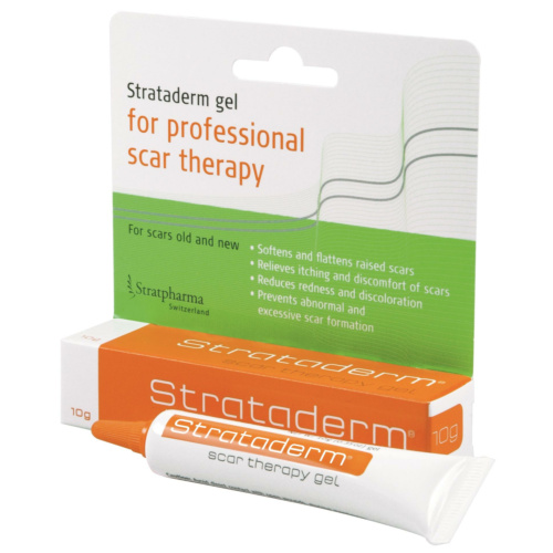 Strataderm ist ein transparentes, selbsttrocknendes, nicht klebendes Silikongel zur äußerlichen Anwendung auf alten oder frischen, geschlossenen und trockenen Narben.